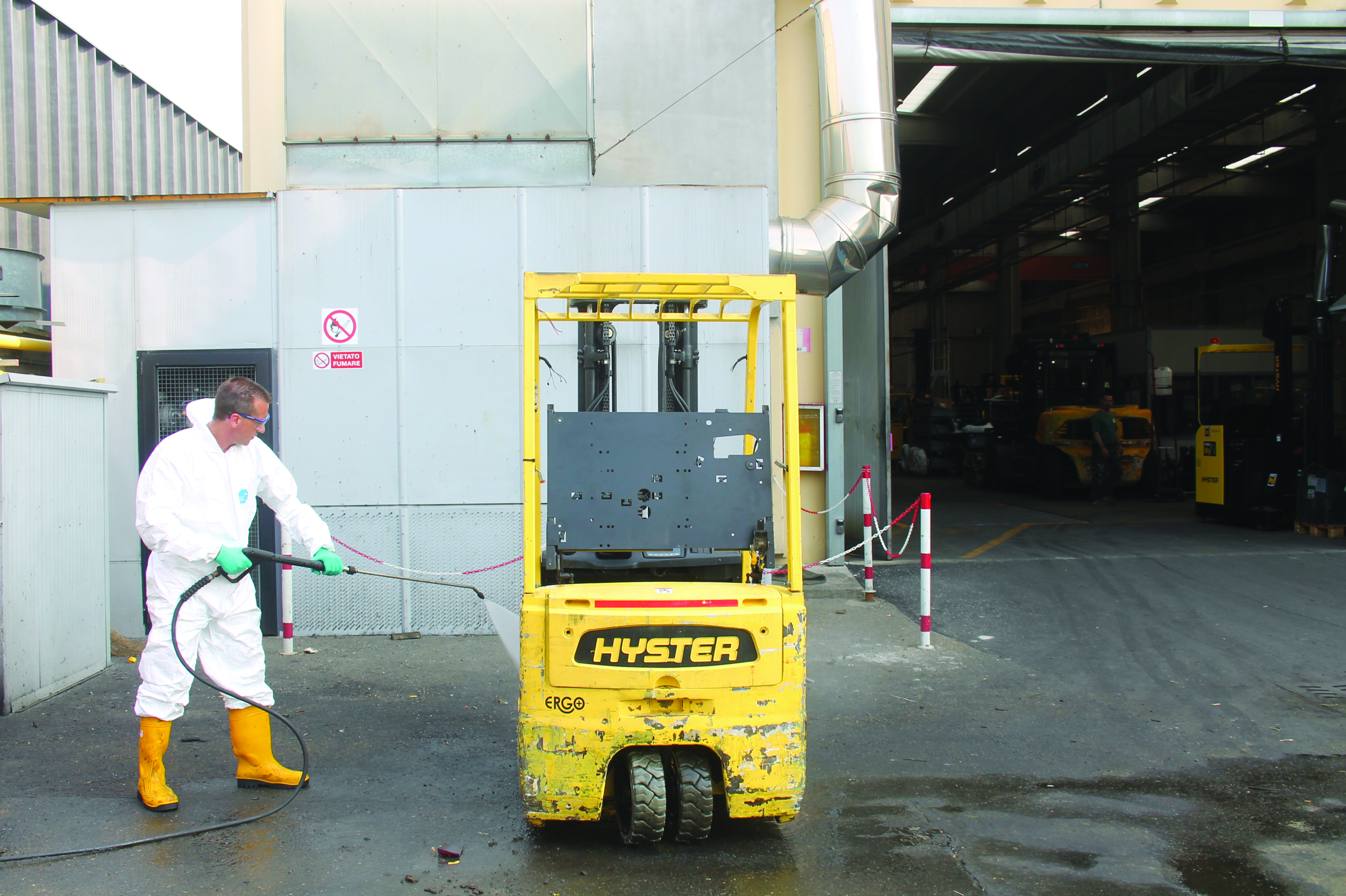 La macchina viene smontata, e tutti i componenti vengono puliti e lavati. I liquidi di esercizio esausti vengono smaltiti nel rispetto delle normative ambientali e vengono sostituiti.